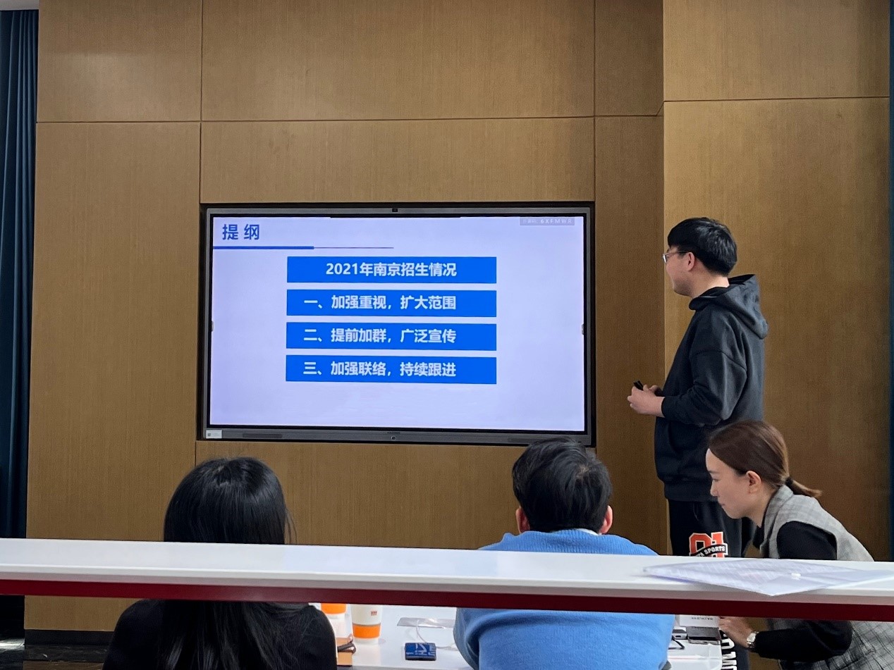 其次,江苏招生组成员刘宗南介绍了2021年在南京市开展高考招生工作的具体做法,并就宣传途径、特色方法等工作经验进行了交流分享。