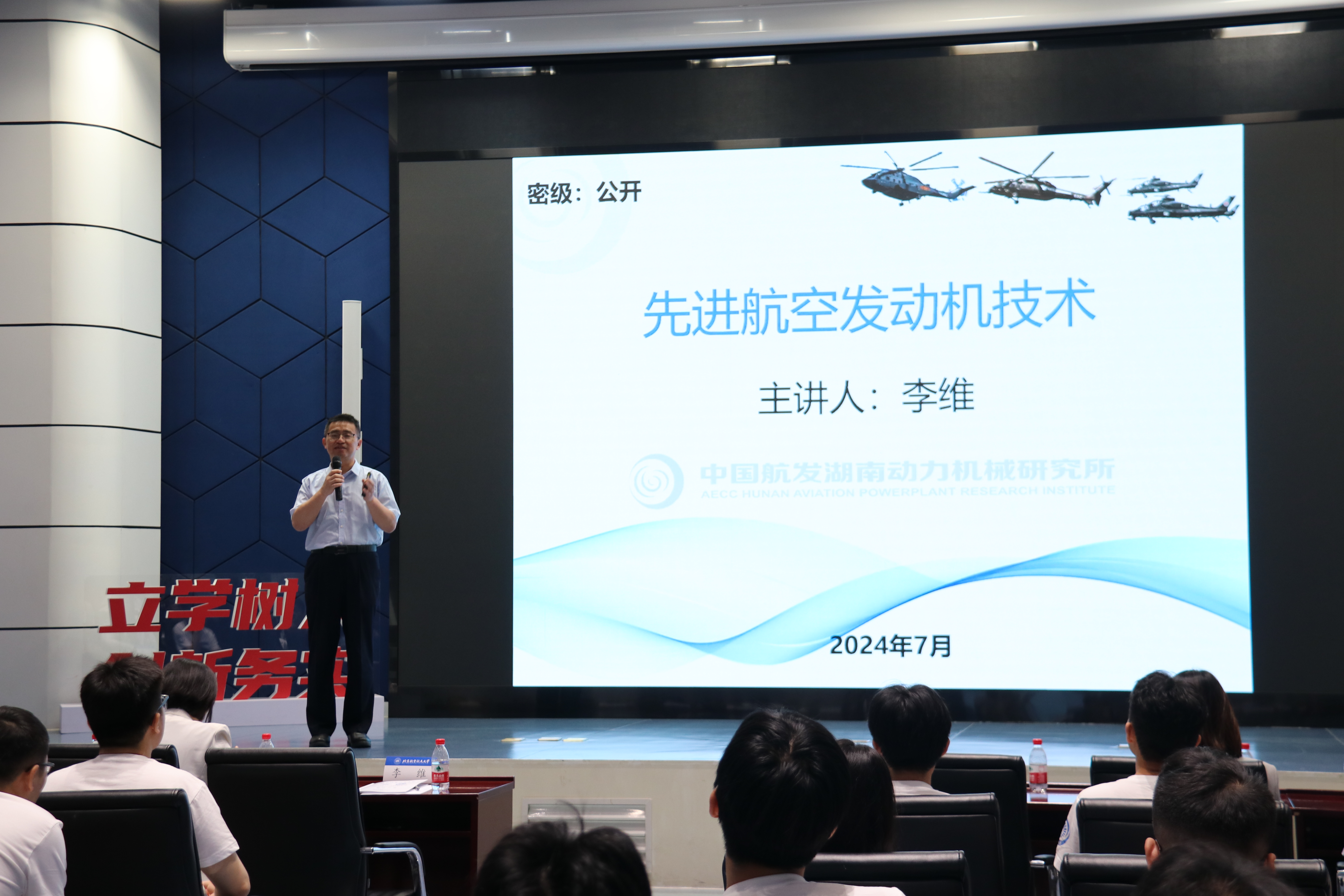 开营仪式之后,航空发动机大师总师讲堂第三讲邀请中国航发动研所李维总师担任主讲嘉宾,以《先进航空发动机技术》为题,为夏令营营员以及航发院师生带来一场生动精彩的专家报告。