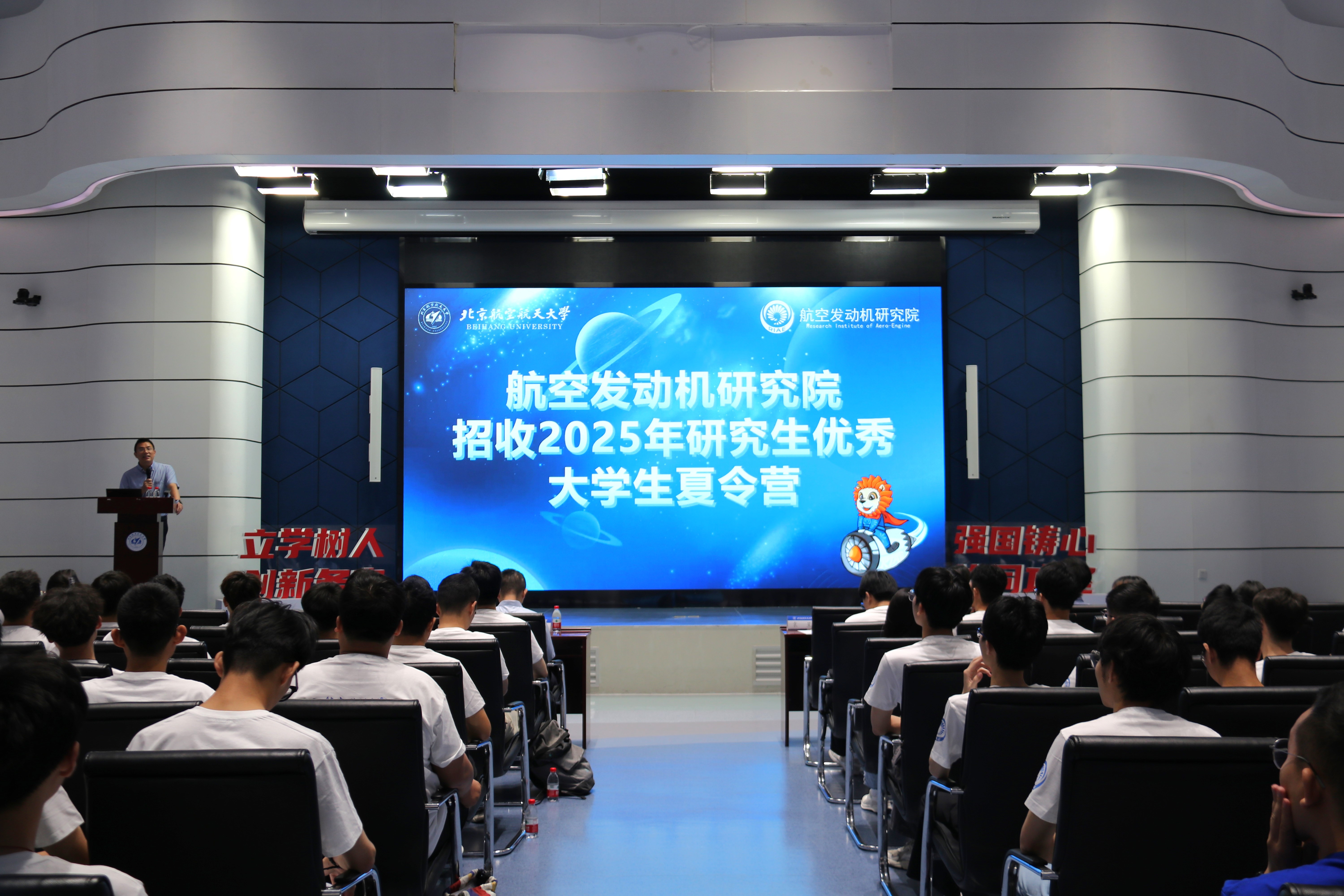 随后,常务副院长胡殿印从北航建校发展史讲起,对航发院的成立背景、战略意义、组织架构、人才培养体系等内容进行了全面介绍。此外,胡殿印欢迎各位优秀营员加入航发院,共同为祖国航空发动机事业发展贡献青春力量。
