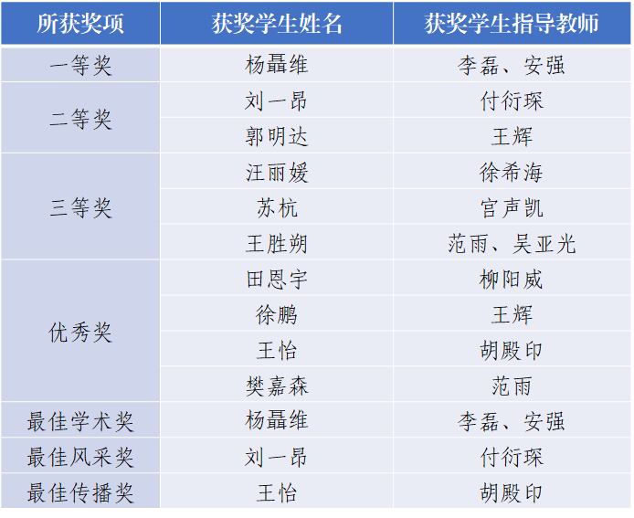 最终,本届学术论坛评选出一等奖1人、二等奖2人、三等奖3人、优秀奖4人以及最佳学术奖、最佳传播奖、最佳风采奖各1人。