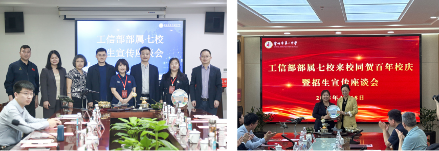 4月18日,北航江苏招生组连同工信部各部属高校江苏招生组,先后前往常州高级中学、常州市第一中学、江苏省前黄高级中学开展高招宣传活动,七校江苏招生负责人与各高中相关负责人围绕学校发展、江苏招生、人才培养等情况及深化“双高”合作等内容进行座谈交流。交流座谈期间,七校向各高级中学赠送特色礼物。各高中负责人表示,将进一步推动学生对工信部部属七校的了解和认识,引导学生立栋梁志、做精英才。