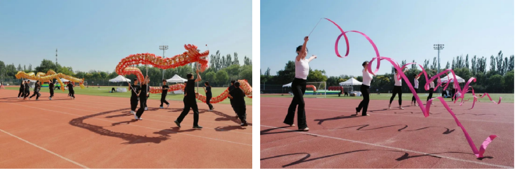 活动伊始,舞龙表演《龙腾九霄》和艺术体操《翱翔绮梦》点燃全场,用青春与活力为本届趣味运动会拉开序幕。