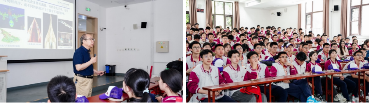 在北航宽敞明亮的教室内,航空科学与工程学院张华教授为中华中学的同学们带来了兼具学术性和趣味性的讲座《以毒攻毒-漫谈飞机上的涡流与涡流发生器》。张教授介绍机翼升力原理以及流动分离、旋涡与失速等概念的基础上,介绍涡流发生器利用有利涡流控制不利涡流的方法。