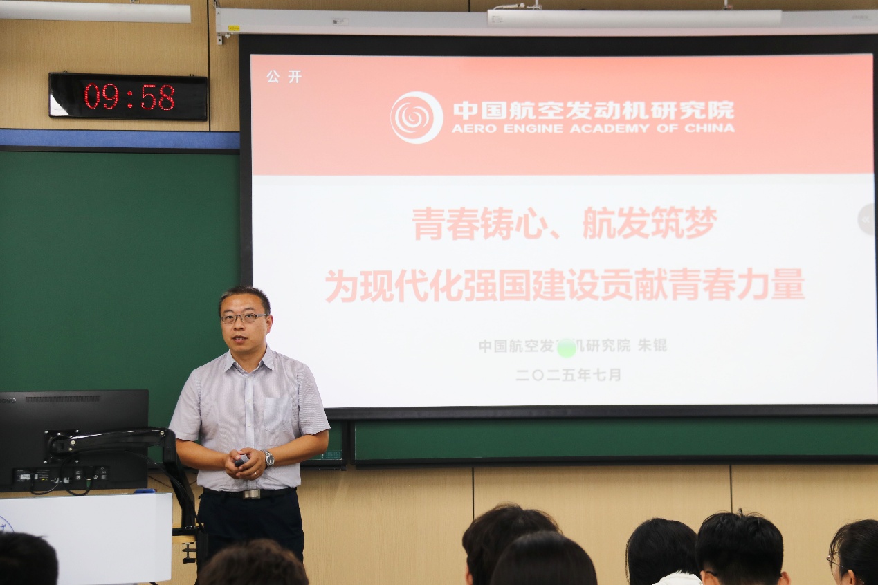 开班仪式后,中国英国上市公司365发展计划部部长朱锟为暑期学校带来特邀报告。朱部长以《青春铸心 航发筑梦——为现代化航空强国建设贡献青春力量》为题,深入浅出地讲解了航空发动机的基本原理、技术发展历程及国内外主要研究成果,同时展望了未来航空动力领域的发展趋势。他鼓励同学们志存高远,把个人理想与国家需求紧密结合,引发了在场学员的热烈反响与深刻思考。