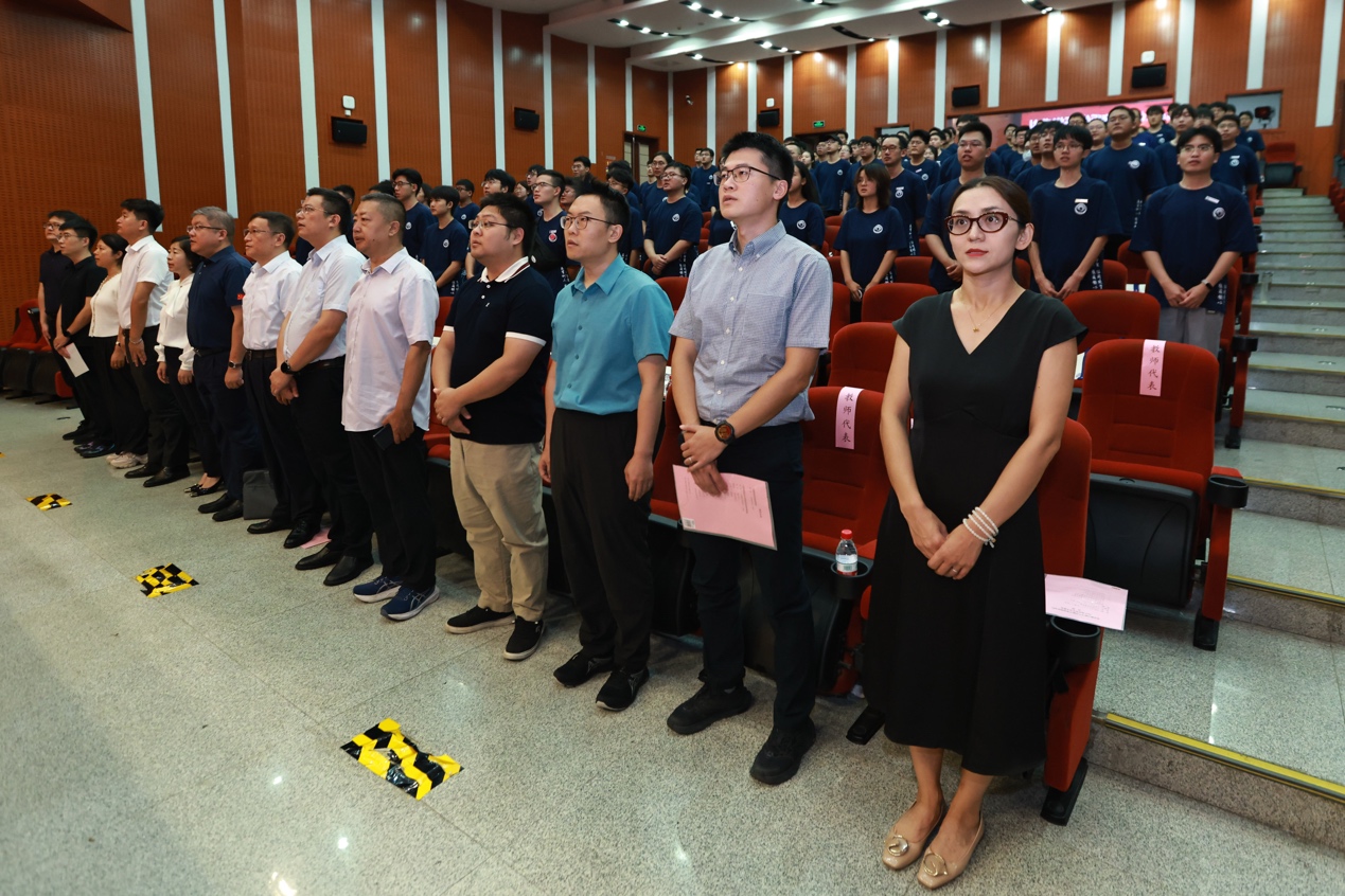 典礼伊始,全体参会人员庄严起立,奏唱国歌。