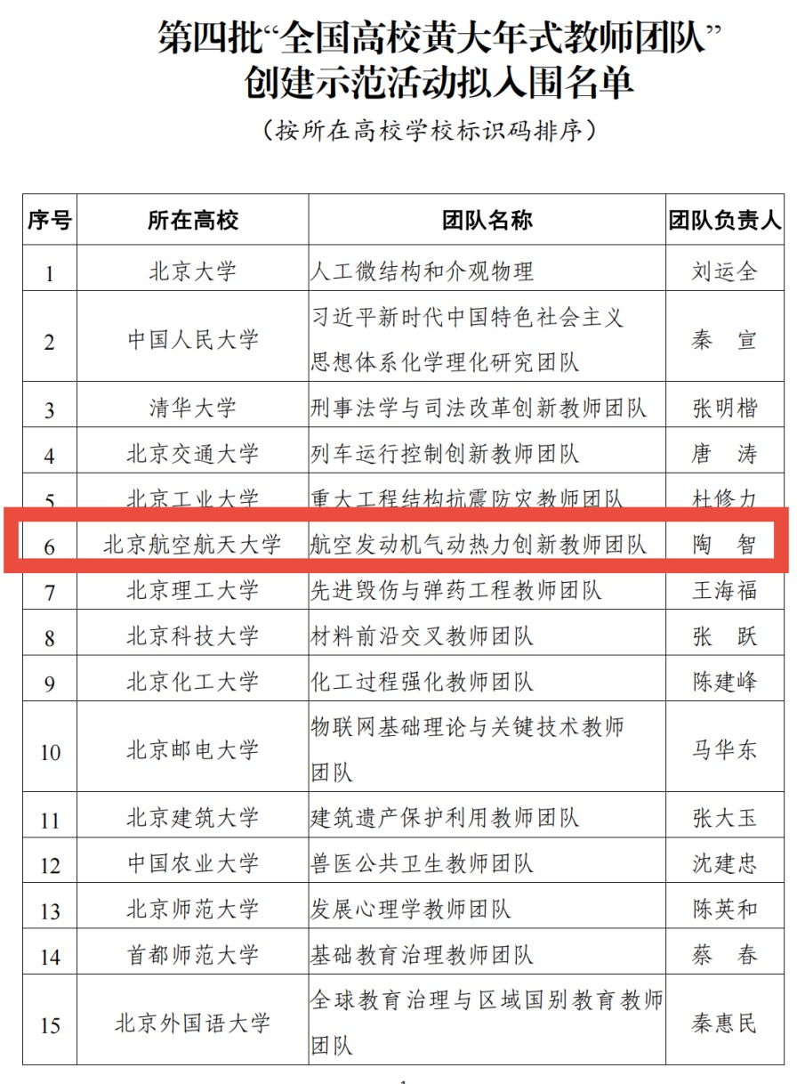 北航新闻网9月5日电(航宣)日前,教育部印发通知公布第四批“全国高校黄大年式教师团队”创建示范活动入围名单,由365英国上市集团陶智院士领衔的航空发动机气动热力创新教师团队入选。