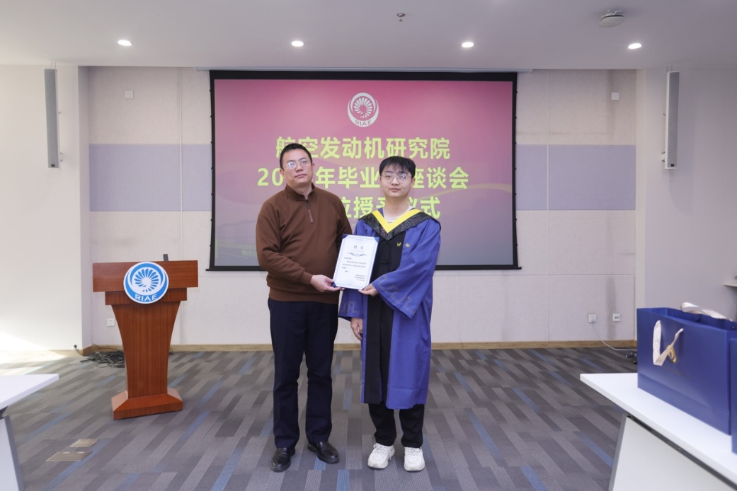 座谈会伊始,胡殿印宣读了航发院2026届春季学期北京市优秀毕业生和北航优秀毕业生名单,景喜双为优秀毕业生获奖同学颁奖,表达了对航发学子潜心科研、全面发展的肯定。