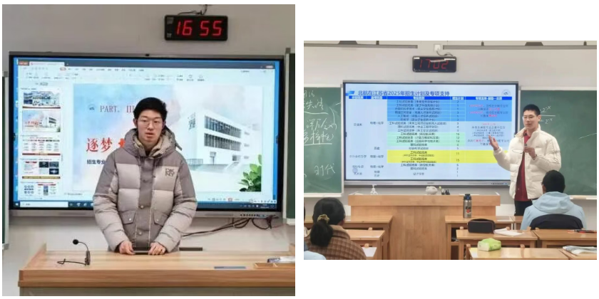 宣讲过程中,队员们重点介绍了北航“德才兼备、知行合一”的校训精神,并结合母校“存诚能贱”的校训内涵,与在场学生分享成长感悟——既要胸怀家国理想,也要脚踏实地努力学习,在时代发展的浪潮中找到属于自己的方向。