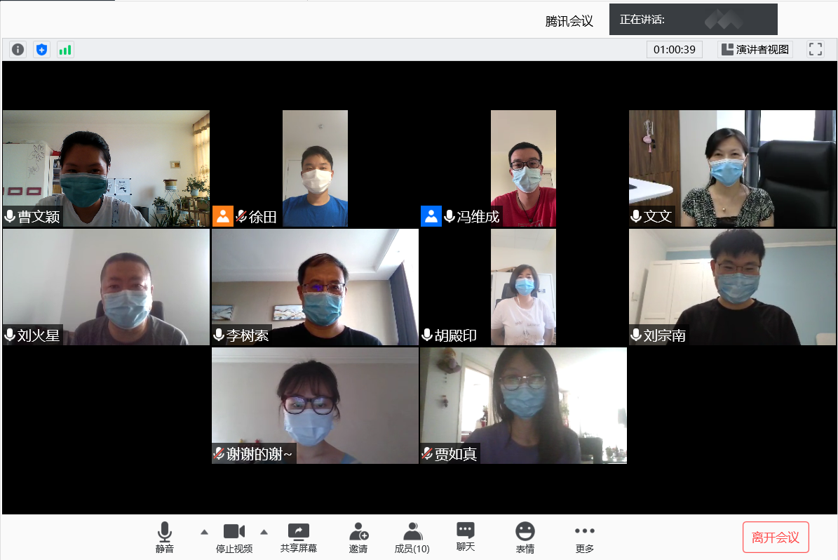 “强心”教师党支部成员逐一畅谈了自己坚守工作岗位、积极开展线上教学、科研、研究生指导等抗疫故事。其中,党支部书记陈志英同志、支委马艳红同志、党员陈小龙同志等还分享了响应党员双报到要求,参加居住社区志愿服务经历,进一步强化了支部党员的宗旨意识和“主人翁”意识。