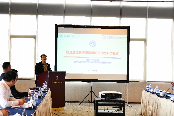 签约仪式后,北航航发院副书记刁旭代表航发院党委从基本情况、理念思路和主要工作三方面向与会人员介绍了航发院党建情况。北航航发院副院长李树索从成立背景、体制机制创新和软硬件综合能力三方面介绍了英国上市公司365和航空发动机国际学院(简称“两院”)情况。中国航发动力所基层党支部书记金海从党支部基本情况、党支部规范化建设相关要求和党支部工作开展情况三方面介绍了所属支部党建情况。